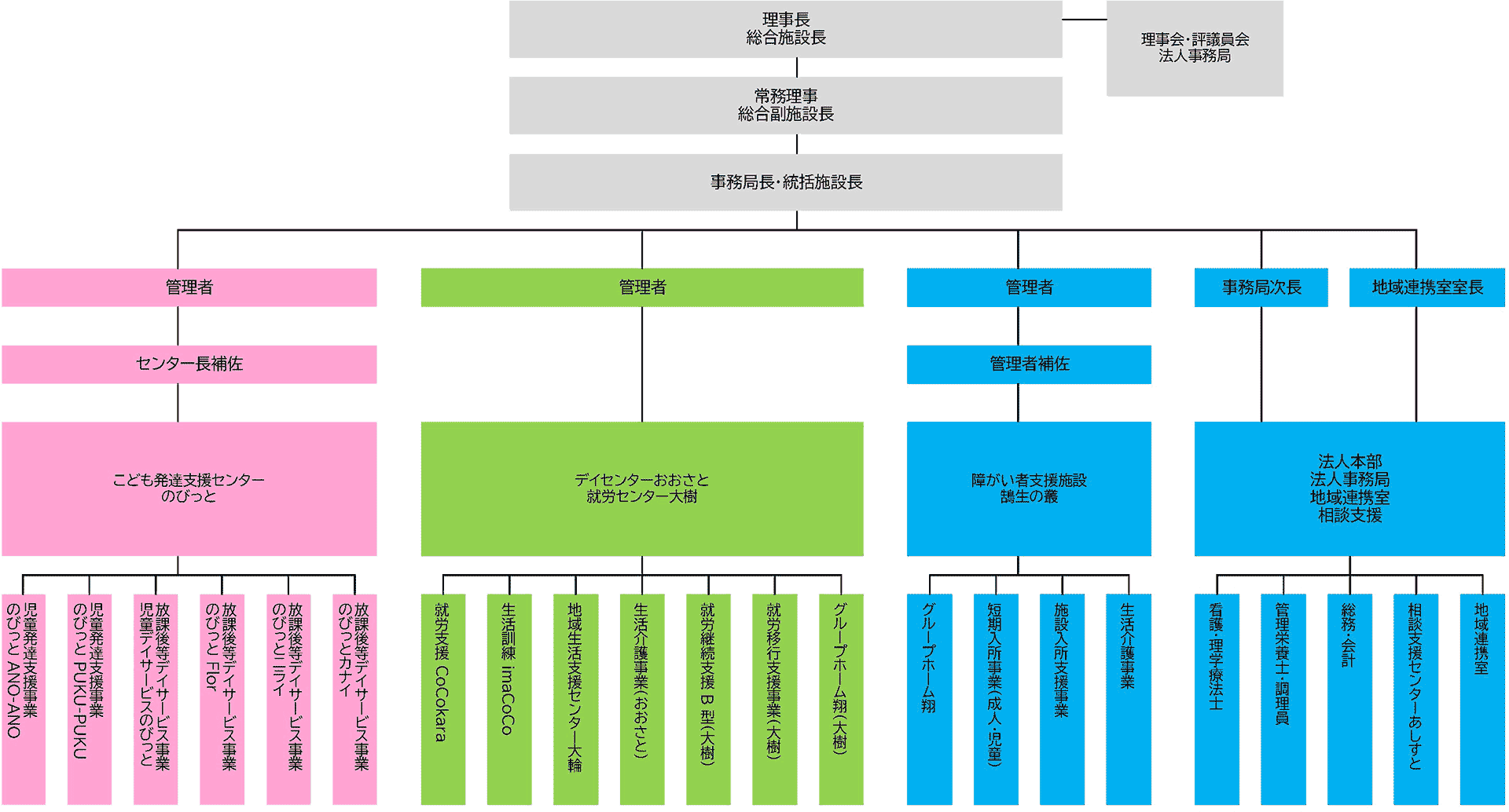 - 7月:デイセンターおおさと2階増築部分完成(10月精神障がい者自立訓練imaCoCo新設)